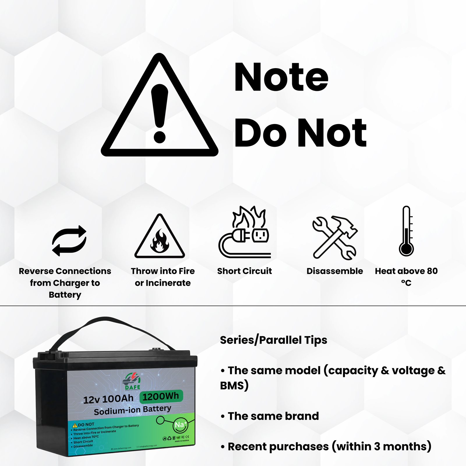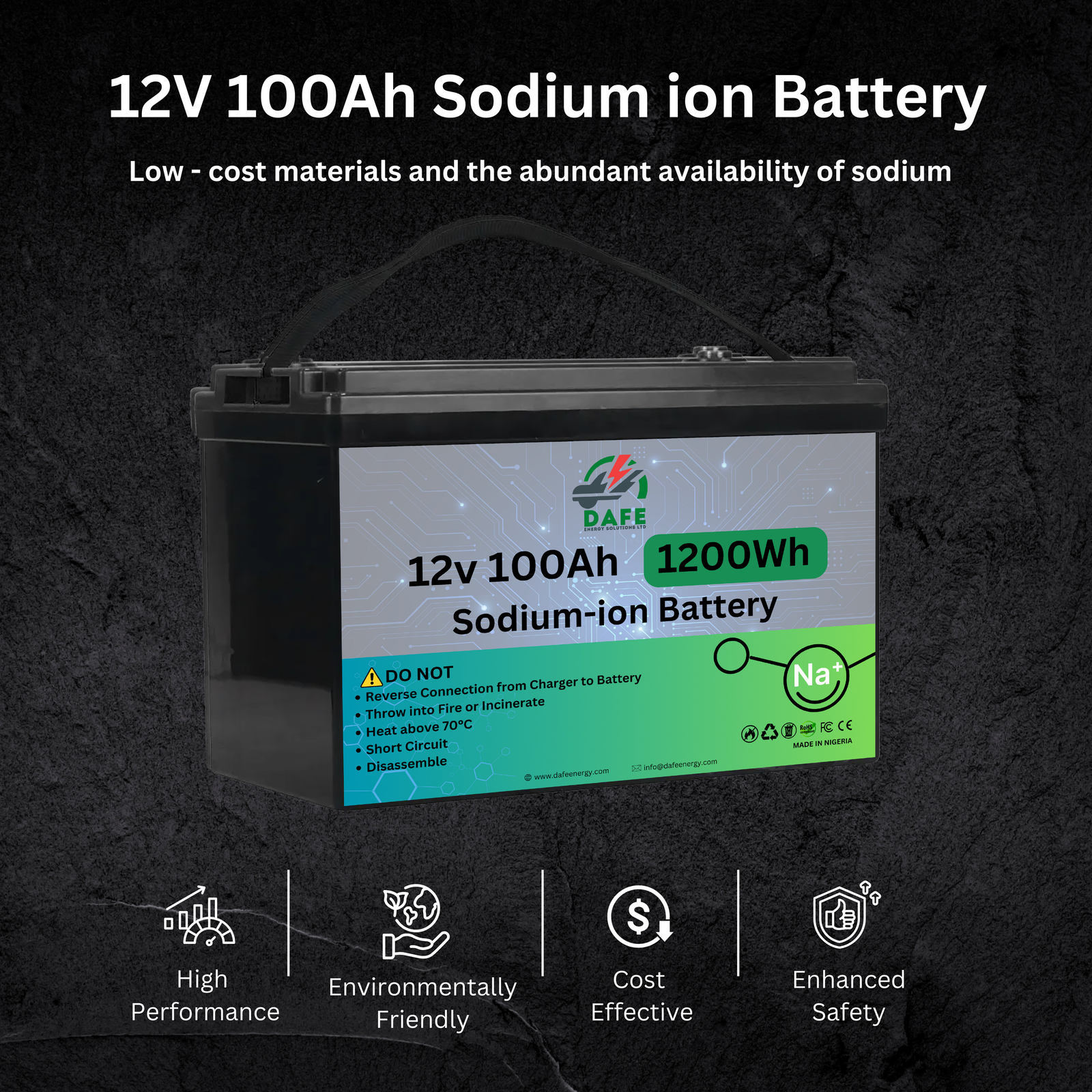 Ideal for a wide range of applications, the 12V 100Ah Sodium-Ion Battery is the perfect choice for those seeking a durable, efficient, and safe power solution.